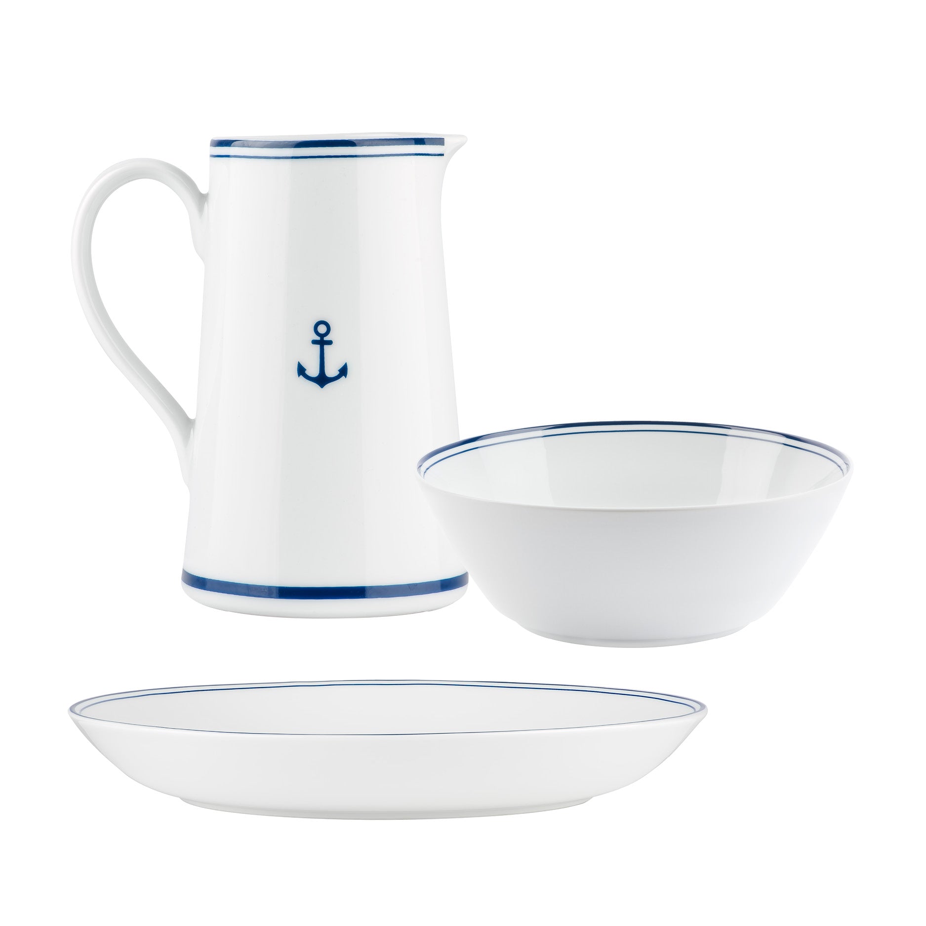 Skap sommerstemning hele året med denne flotte serveringspakken fra Maritim-serien. Pakken inneholder en mugge, et serveringsfat og en bolle – perfekte deler for å dekke et innbydende bord, enten du serverer skalldyr, salater eller forfriskende drikke.