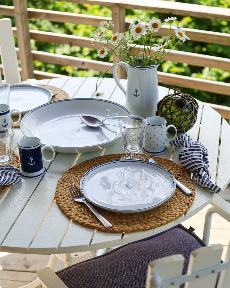 Det klassiske maritime designet i blått og hvitt gir en tidløs, nordisk stil til borddekkingen. Alle delene tåler oppvaskmaskin og er laget i høy kvalitet fra Porsgrunds Porselænsfabrik.