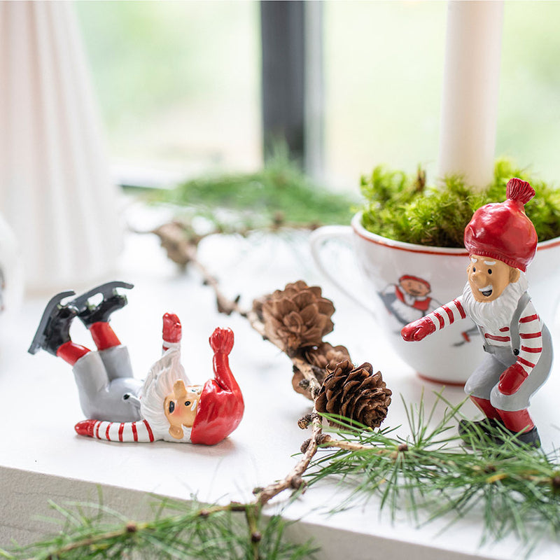 Skøyte-nissen er en herlig figur som fanger den lekne ånden av vinteren. Ligger på ryggen med føttene i været, iført skøyter, bringer han et smil til ansiktene rundt bordet. Denne lille lekenissen er perfekt for å skape latter og glede blant gjestene, samtidig som han tilfører et lekent preg til borddekkingen. La skøyte-nissen bidra til å skape en koselig atmosfære og bringe folk sammen i julehøytiden!