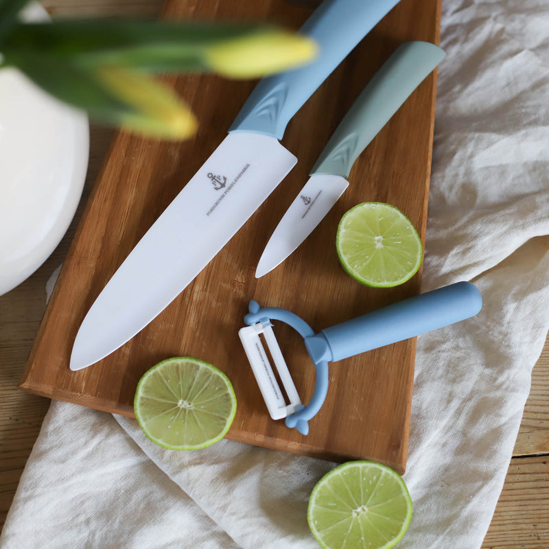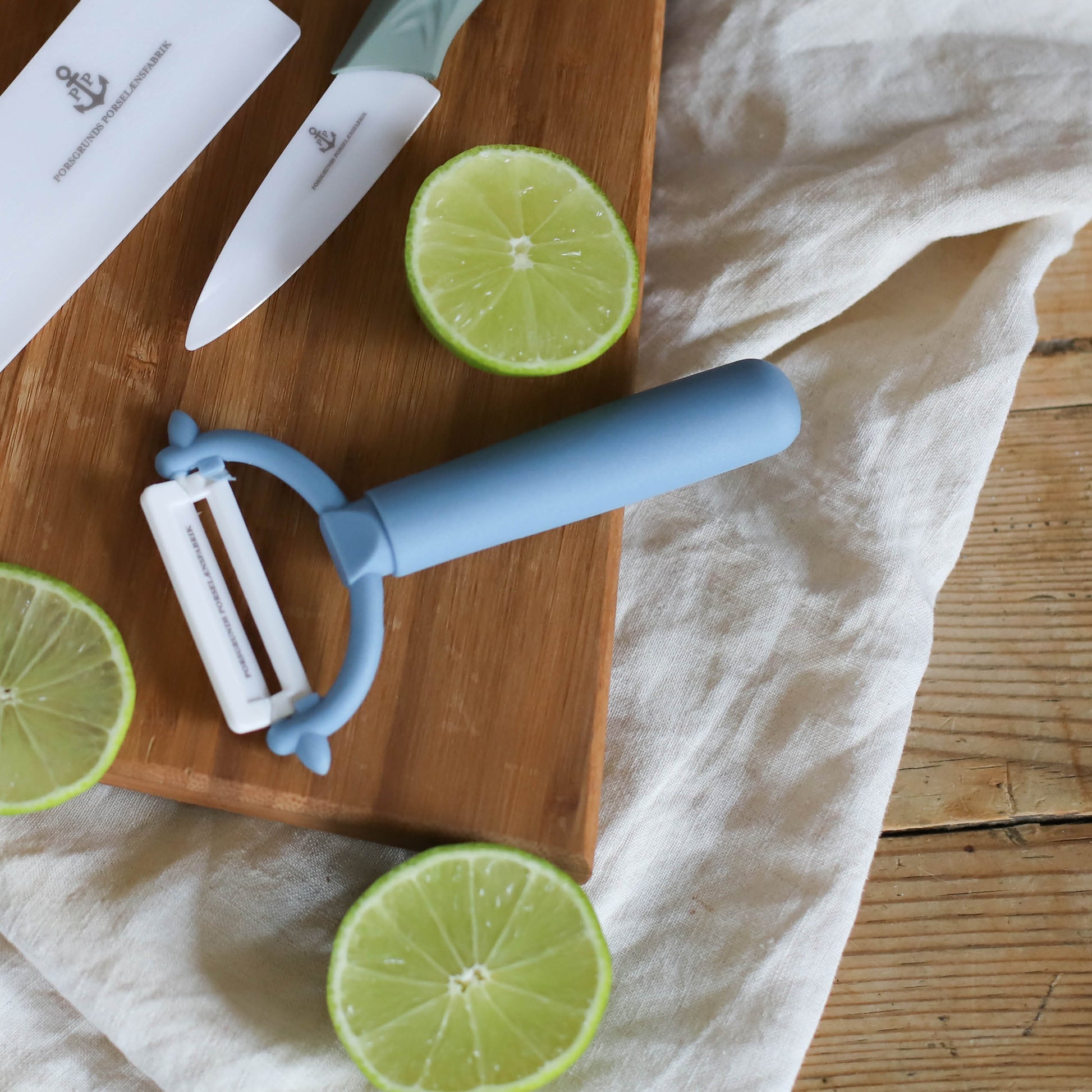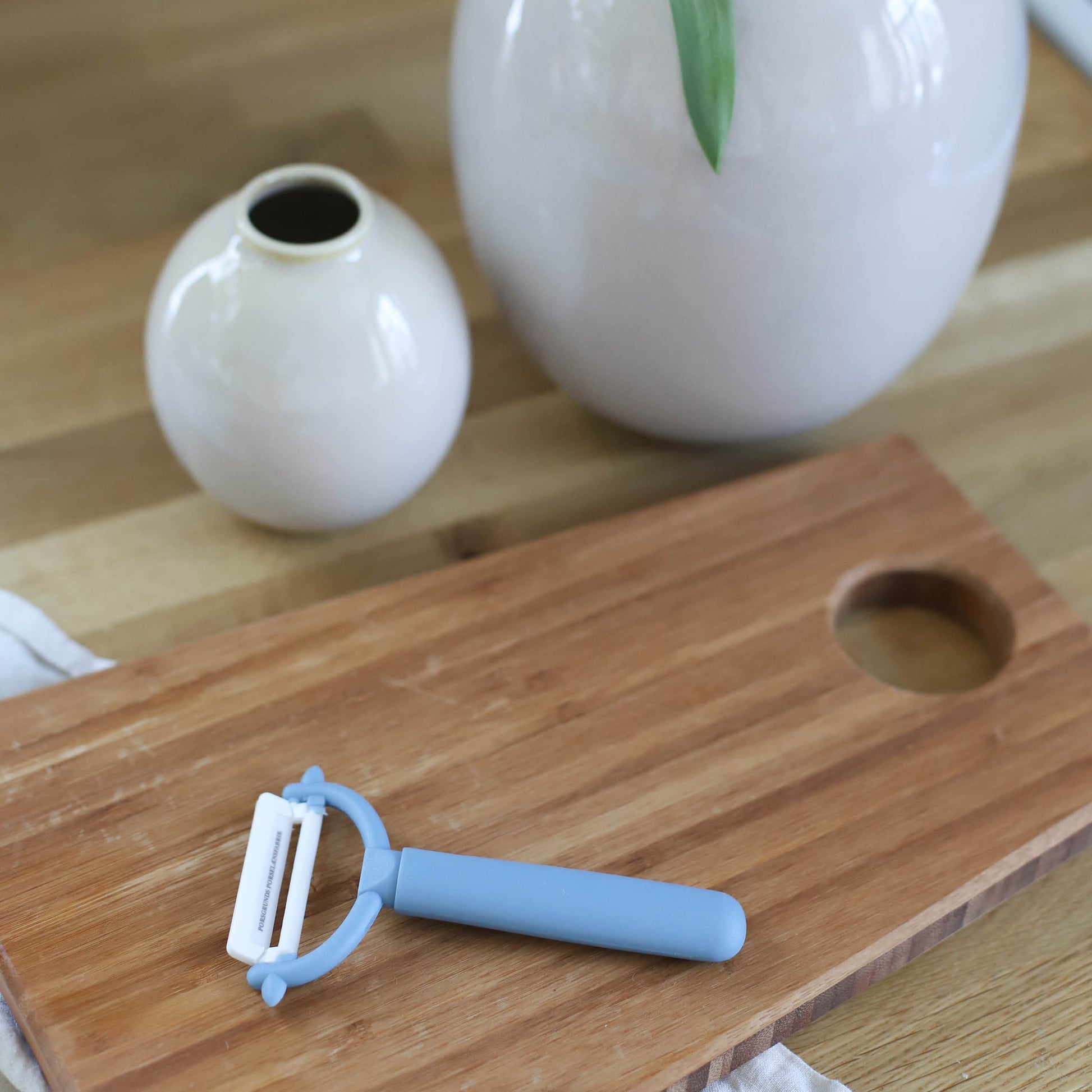 Denne elegante og effektive skrelleren i lyseblå farge gjør det enkelt å skrelle poteter, gulrøtter og andre grønnsaker. Det komfortable håndtaket gir godt grep, og det skarpe keramiske bladet glir lett gjennom skallet. Et uunnværlig redskap for både raske måltider og mer avansert matlaging – og en fargeklatt i kjøkkenskuffen!