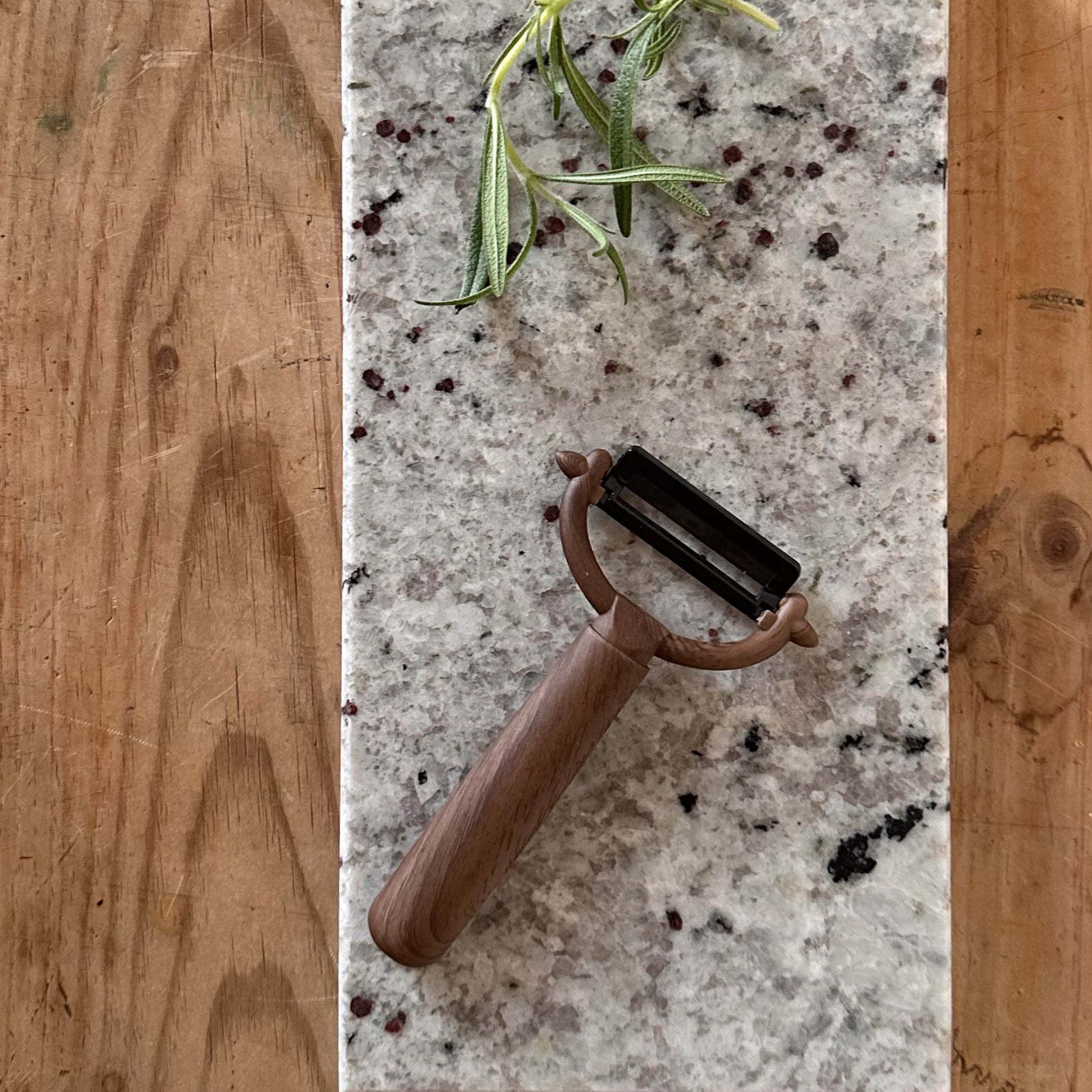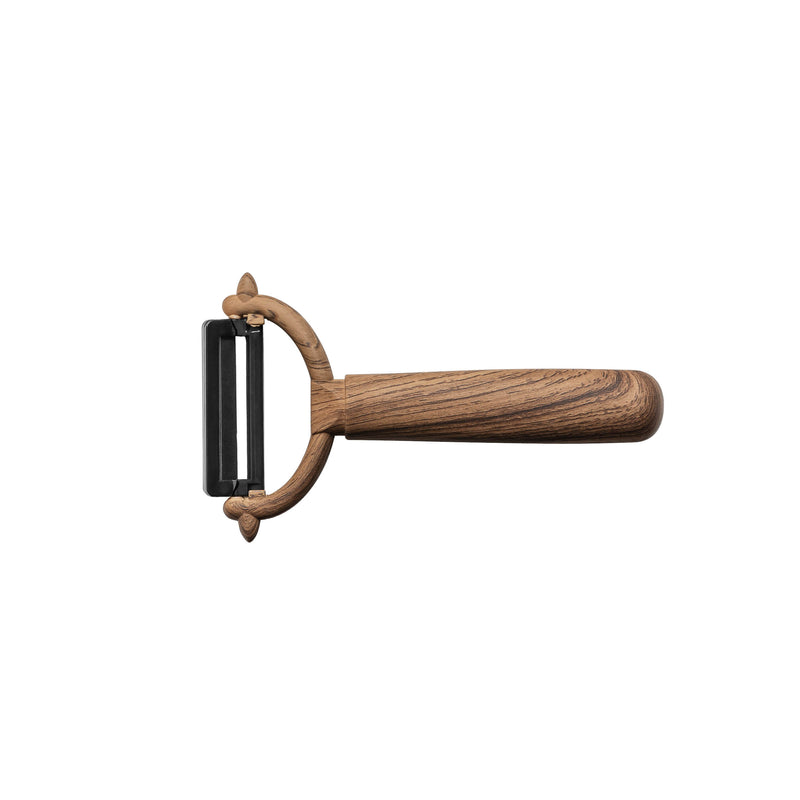 Effektiv og presis skrelling med et sylskarpt porselensblad. Skrelleren i Woods-serien fjerner skallet fra frukt og grønnsaker med minimale råvaretap, slik at du får mest mulig ut av ingrediensene dine. Det lette designet og det sklisikre håndtaket i gummi med trelook gir et komfortabelt grep, slik at du kan jobbe raskt og effektivt.