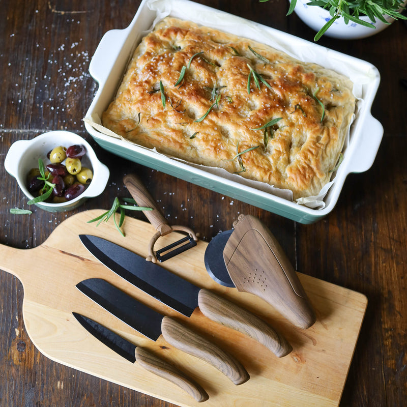 Woods-serien i De Cuisson-kolleksjonen fra Porsgrunds Porselænsfabrik kombinerer skarphet, kvalitet og design. Porselensbladene holder seg skarpe betydelig lenger enn stål, ruster ikke og påvirker ikke smaken på maten. Med sklisikre håndtak i gummi, designet for å etterligne tre, får du et stilrent og behagelig kjøkkenredskap.