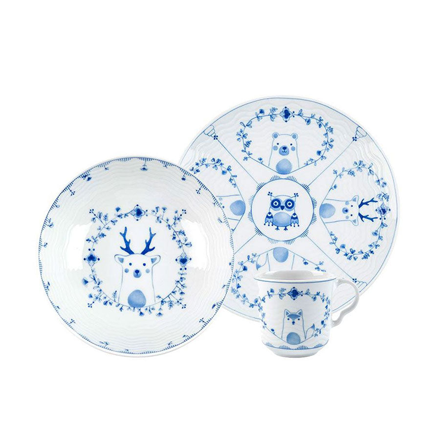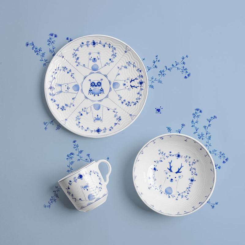 Et sjarmerende barnesett med tre deler, designet for små hender og store opplevelser. Det delikate stråmønsteret kombinert med det lekne motivet fra skogen skaper en eventyrlig spiseopplevelse for barna. Perfekt som gave eller for å gjøre måltidene ekstra spesielle.