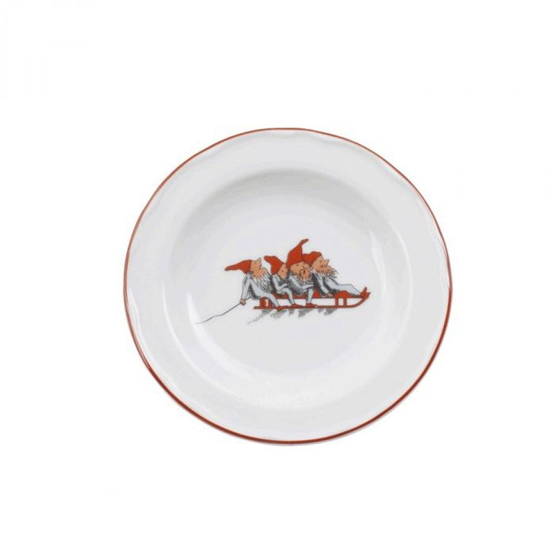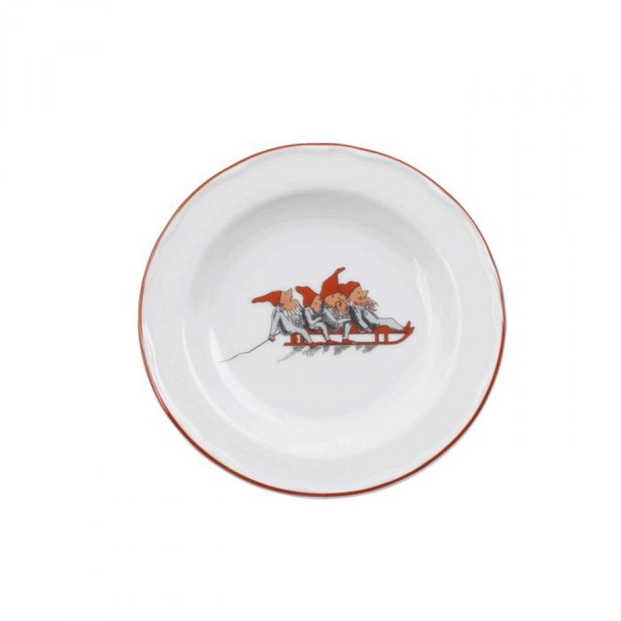 Den sjarmerende smørskålen på 12,5 cm fra Nisseserien er perfekt for å servere smør eller andre småting på bordet. Laget av høykvalitets høybrent feltspatporselen, kombinerer den funksjonalitet med et festlig design. Den lille størrelsen gjør den ideell for å tilføre et koselig preg til frokost- eller kveldsbordet, og den fungerer også utmerket som en dekorativ skål under kubbelyset.