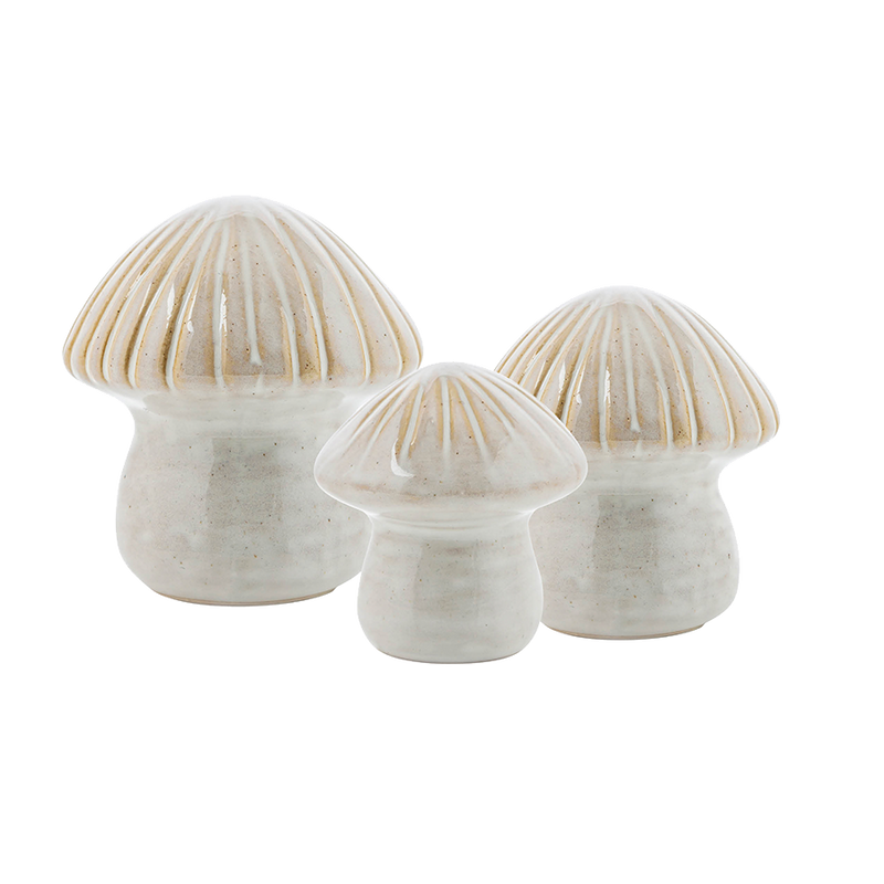Her har vi samlet de tre ulike størrelsene på keramikk-soppene i en pakke. Fine å dekorere med sammen, som bordpynt, på lysfat osv.