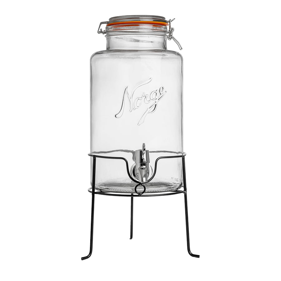 Løft serveringen med et solid stativ til Norgesglassets drikkedispenser. Stativet gir perfekt høyde for å fylle glassene uten søl, og gjør det enklere å bruke tappekranen. Praktisk, stabilt og laget for å matche drikkedispenserens rustikke uttrykk.