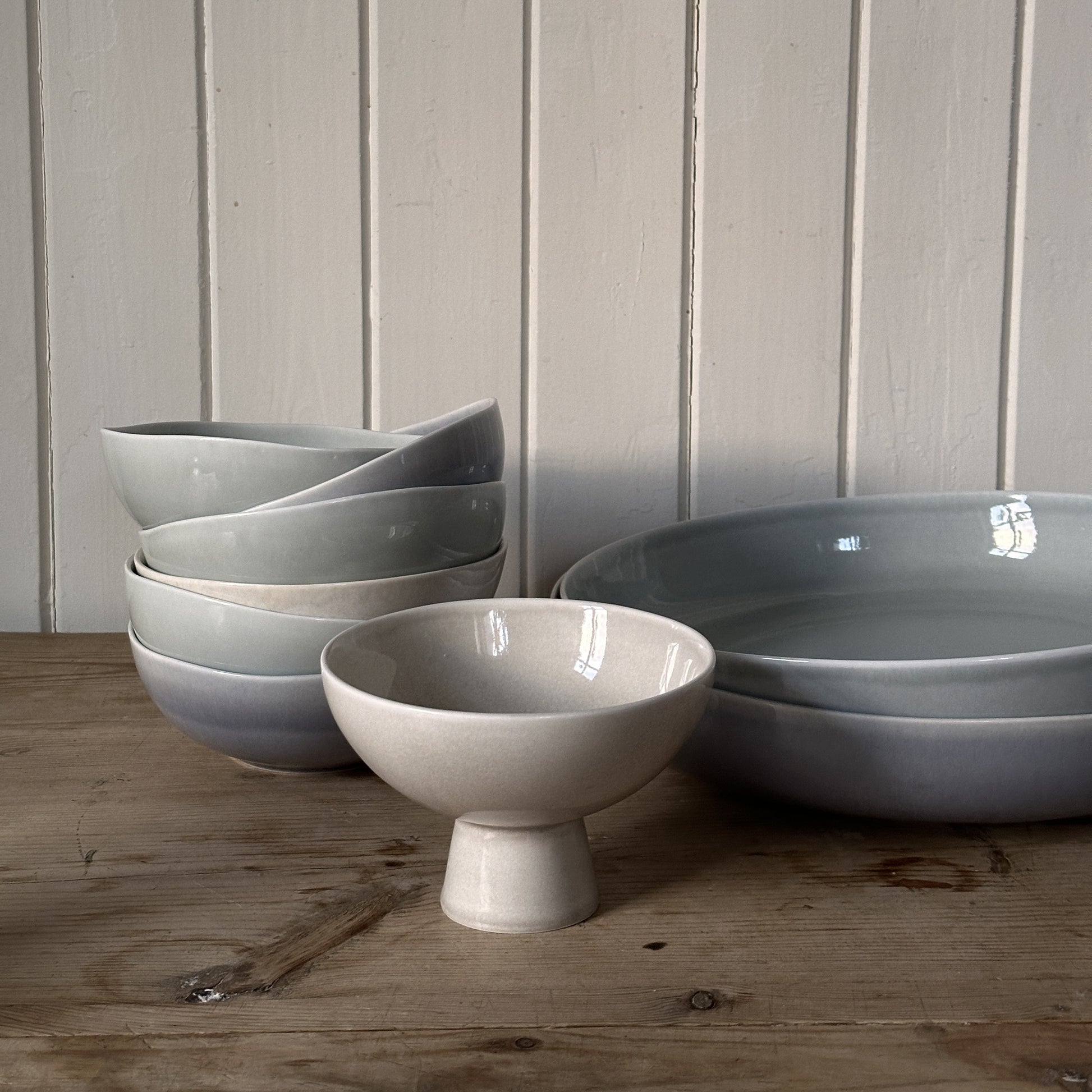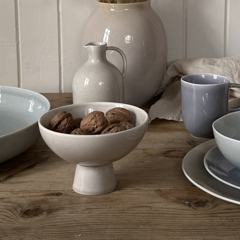 Stettebollen kan også brukes til dekorative formål, som å presentere små blomsterarrangementer, konfekt eller smykker. Med sin unike reaktive glasur og delikate pastellfarge er dette en allsidig del av Ellie-serien som kombinerer funksjonalitet og estetikk på en vakker måte.
