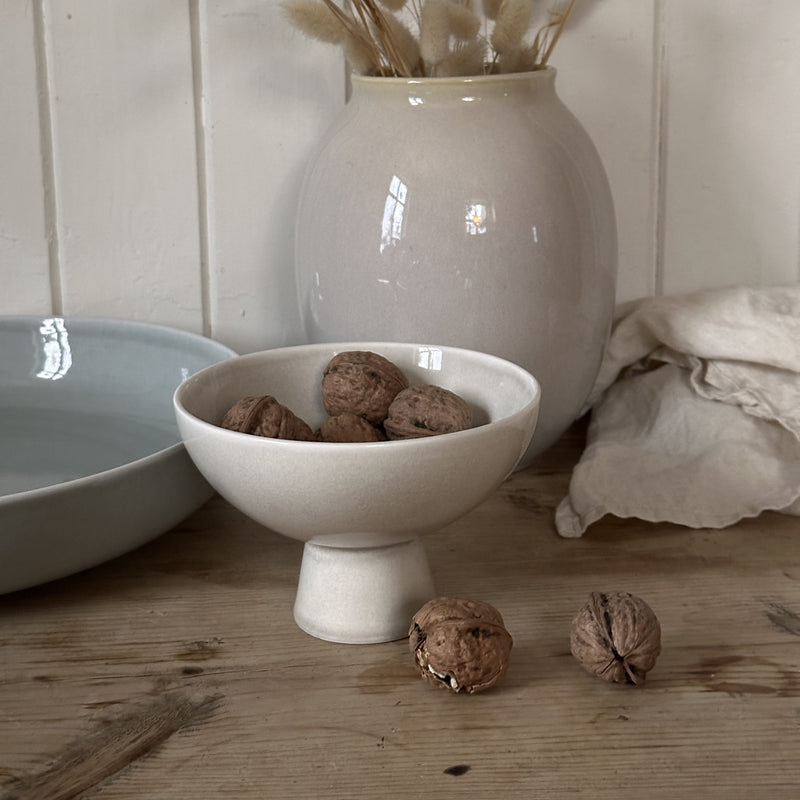 Stettebolle 15 cm i fargen Latte er en elegant liten skål på stett fra Ellie-serviset. Den varme beige tonen og det tidløse designet gjør den perfekt til å servere alt fra små desserter og frukt til snacks og nøtter. Stetten gir bollen et løftet og sofistikert uttrykk som passer både til hverdagsbruk og festlige anledninger.