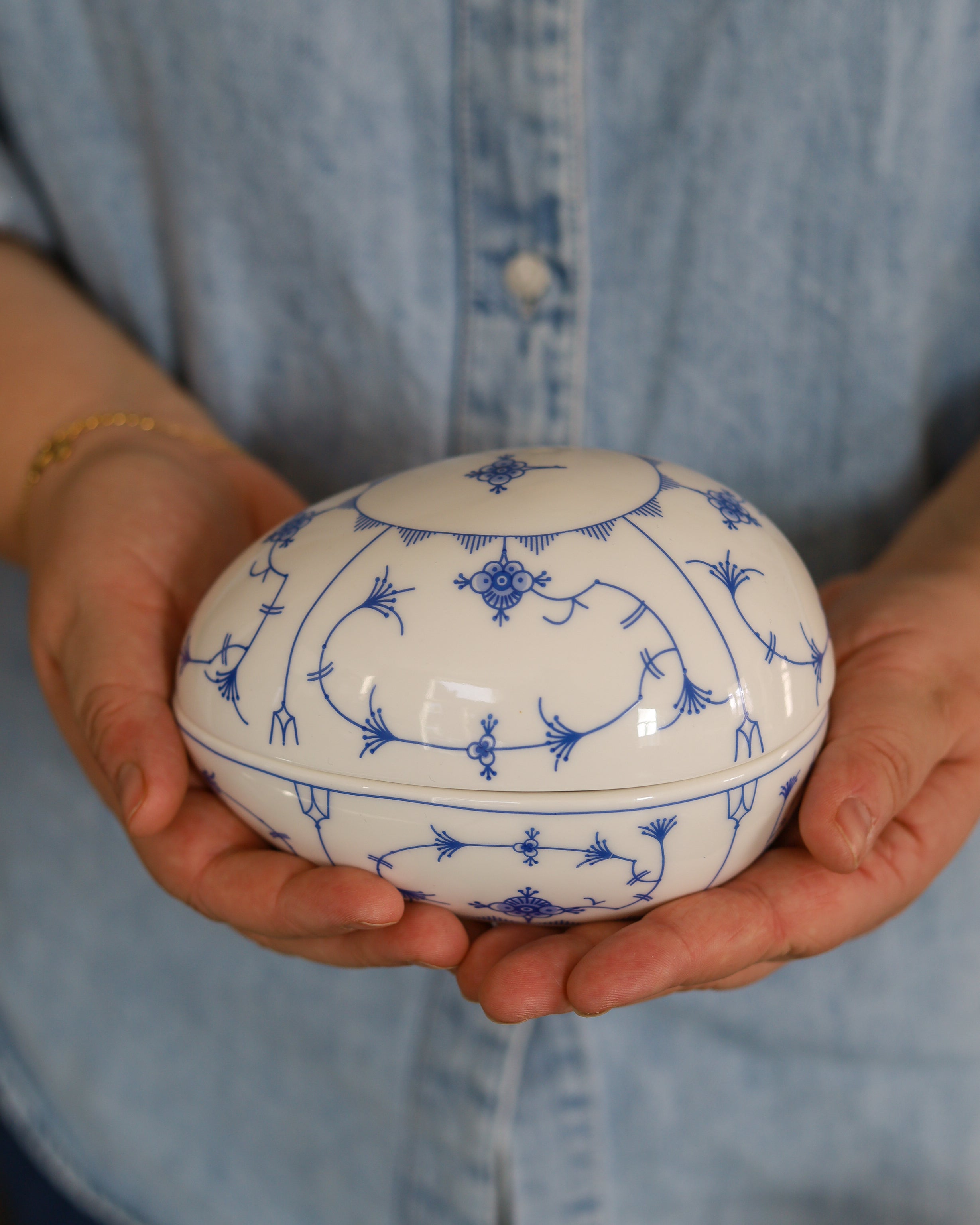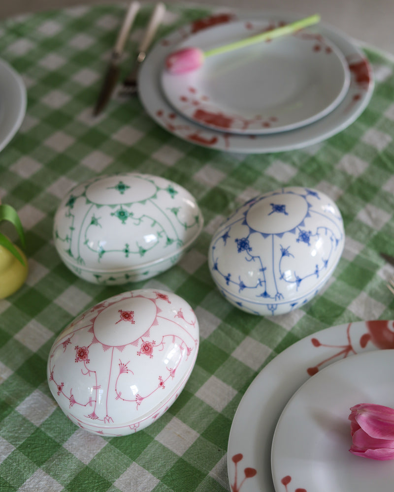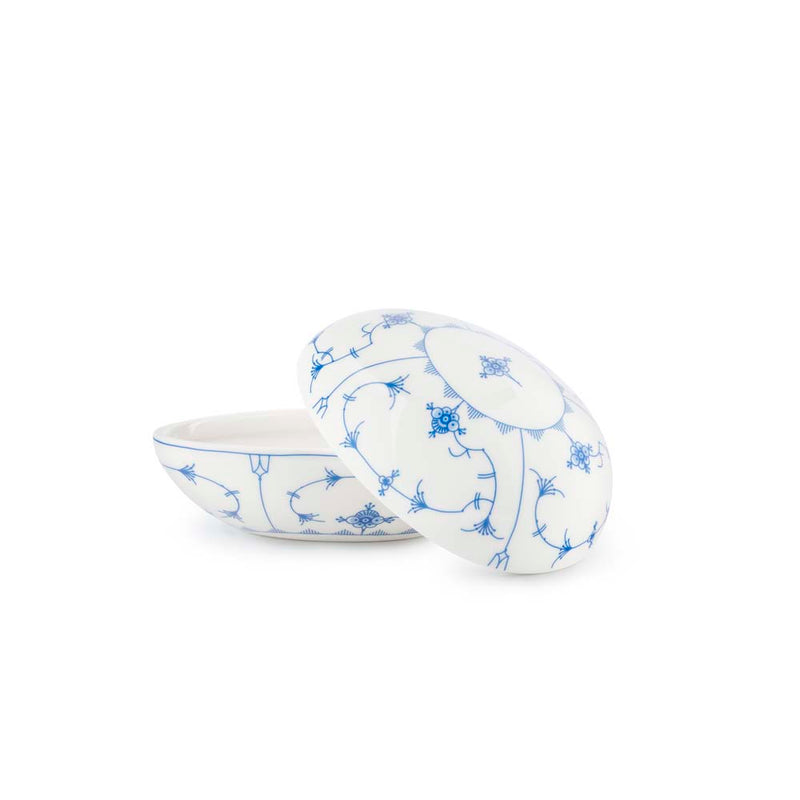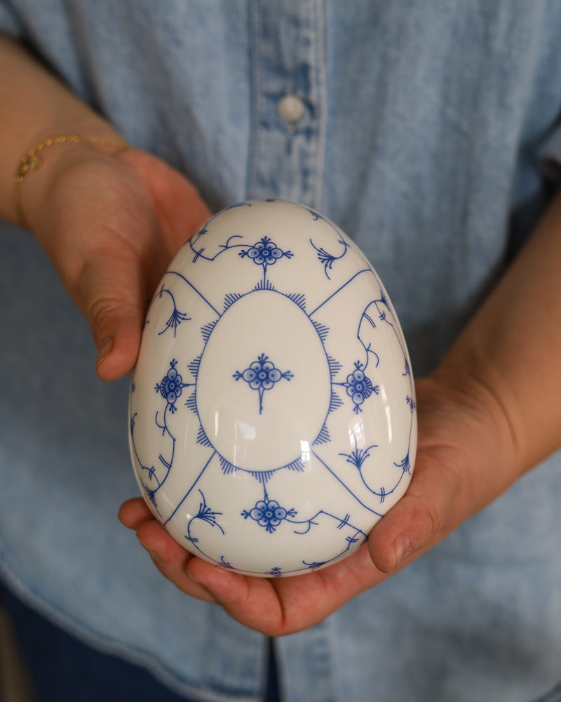 Et dekorativt påskeegg i porselen, prydet med det ikoniske Stråmønsteret i blått. Egget har lokk og er perfekt til små overraskelser, påskegodt eller som et stemningsfullt blikkfang i vårdekoren. En tidløs påskefavoritt som kombinerer tradisjon og vårlett eleganse