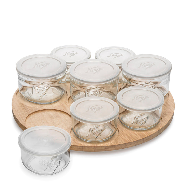Norgesglasset er et ikon i norsk husholdning og revolusjonerte matlagingen da det kom i 1902. Fra oppstarten og frem til 1978 ble det produsert hele 75 millioner glass! I 2014 gjorde Norgesglasset comeback, og kan nå finnes i hyllene igjen, både i den klassiske formen og i nye, videreutviklede varianter som drikkeglass, krukker, mugger, kopper og flasker. Norgesglasset har blitt et symbol på både nostalgi og funksjonell design – perfekt til ethvert kjøkken.