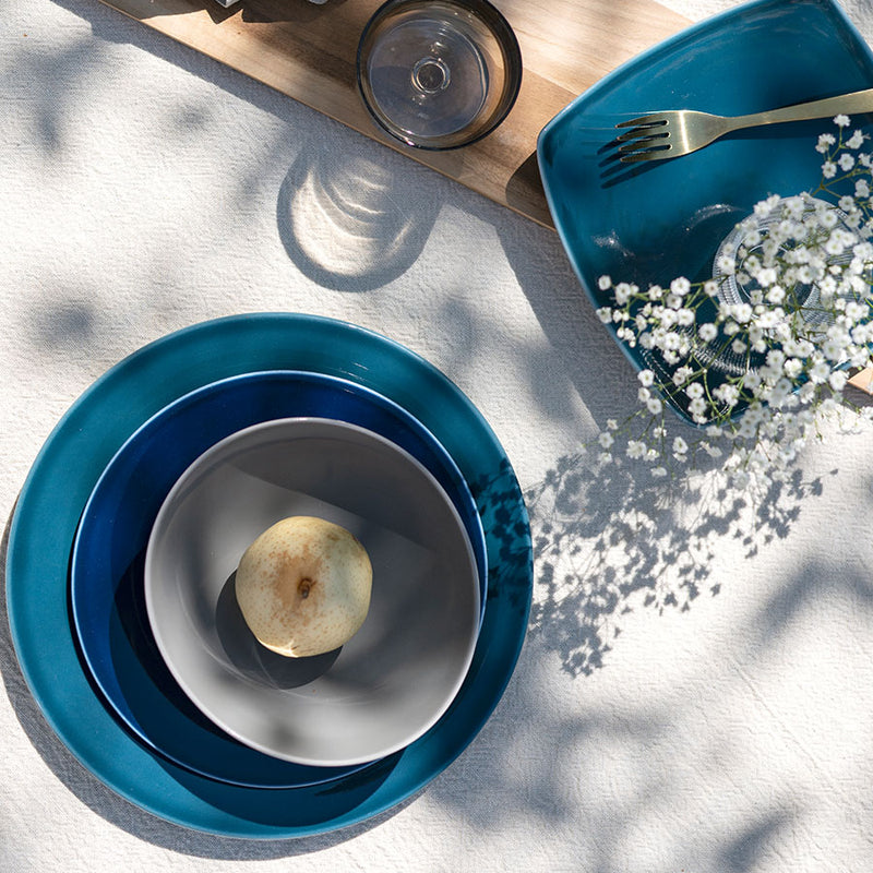 Rund tallerken med fane i en vakker sjøgrønn farge. Tallerkenen perfekt til å anrette forrett, lunsj eller andre småretter på. 22 cm i diameter. Dekk bordet med servisedeler i samme farge, eller kombiner med Sense hvit eller Sense i andre farger.