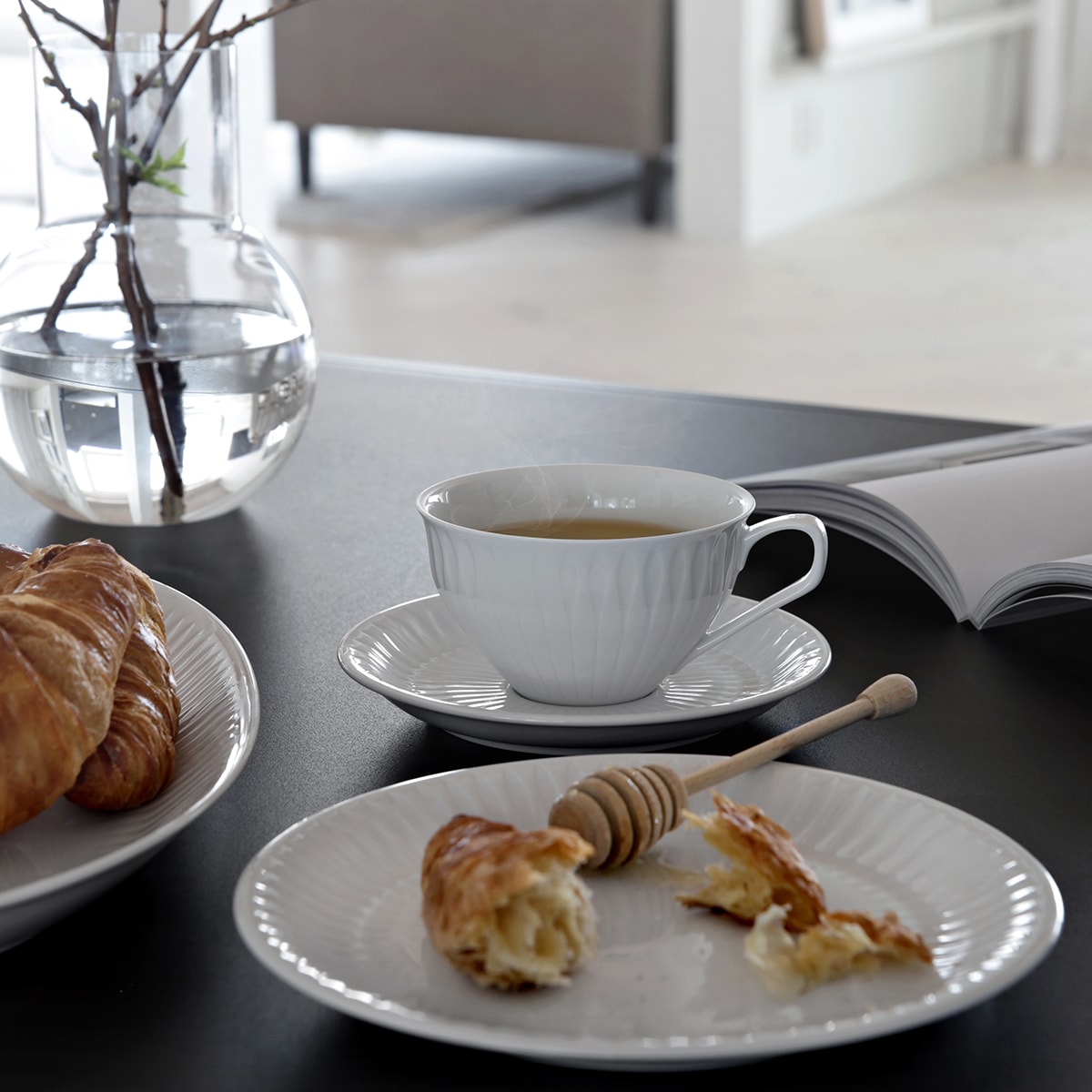Spire fra Porsgrunds Porselænsfabrik er et delikat servise i hvitt porselen med vakkert relieffdekor. Serviset kan brukes til hverdags, men er like fint til fest. Formene er inspirert av selve dekorelementet Spiren, som strekker seg elegant oppover. Serviset Spire ble første gang lansert 1952 og er designet av Konrad Galaaen som ble ansatt ved Porsgrunds Porselænsfabrik i 1947. Christian Svinddal og Nora Olafsdatter Krogh har designet nye former til en revitalisering av Spire tilpasset en moderne hverdag. Formspråket og dekoren er tro mot Konrad Galaaens konsept der samspillet mellom former og dekor er sentralt.