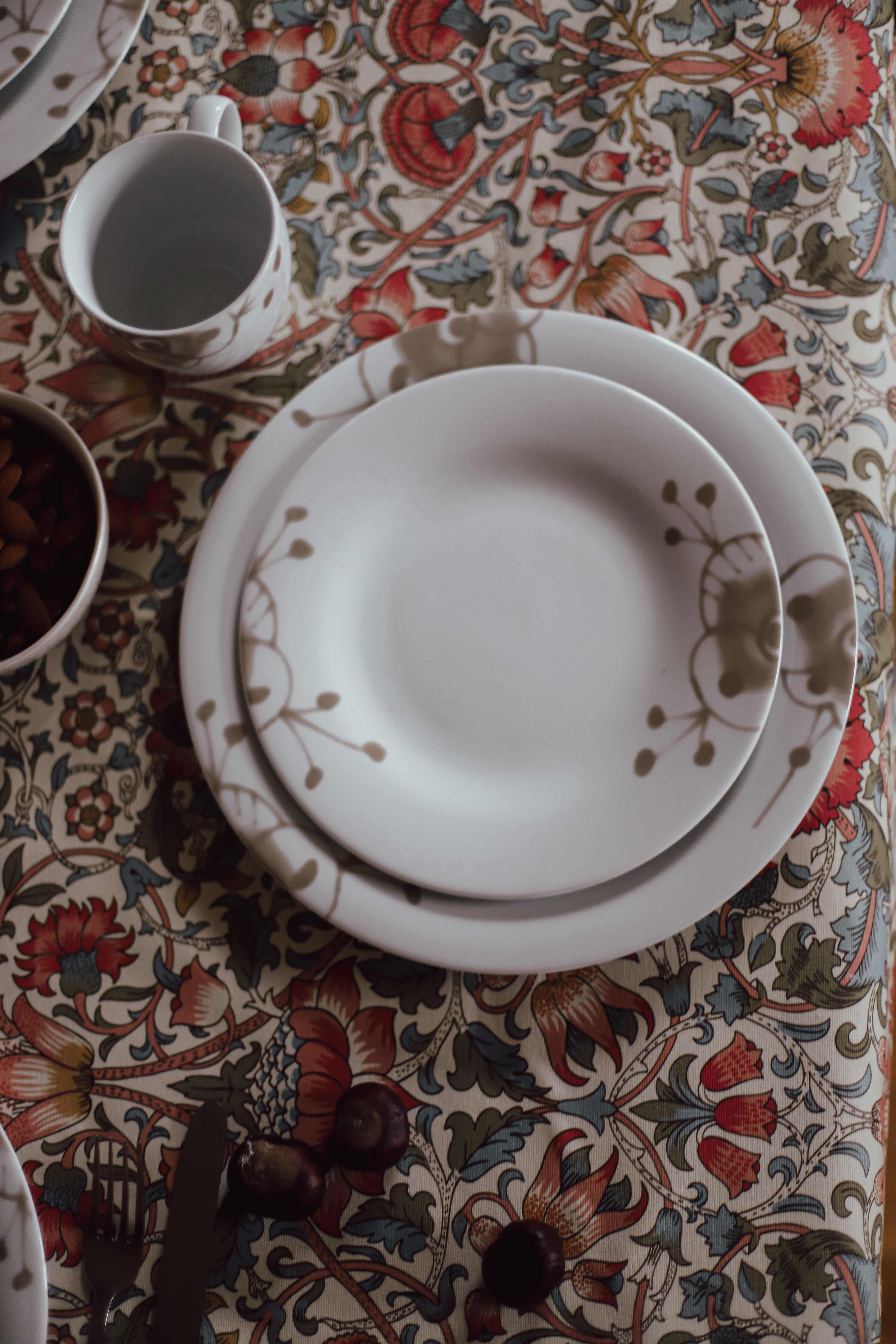 Det ikoniske blå stråmønsteret får en ny og moderne karakter mot den beige bakgrunnen – tidløst, men med en moderne ro.