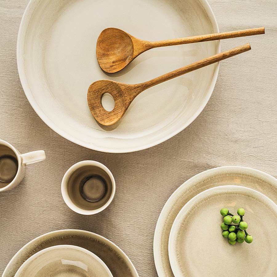 Ellie er et tidløst servise med myke pastellfarger som passer perfekt til både hverdag og fest. Tallerkenen på 26,5 cm i fargen Latte er et elegant valg som gir en sofistikert ramme rundt måltidet. Den delikate pastellfargen gjør tallerkenen ideell for alt fra lekre salater til hovedretter som skal være et blikkfang på bordet. De ujevne kantene gir tallerkenen en håndlaget følelse, som tilfører et personlig og interessant uttrykk.