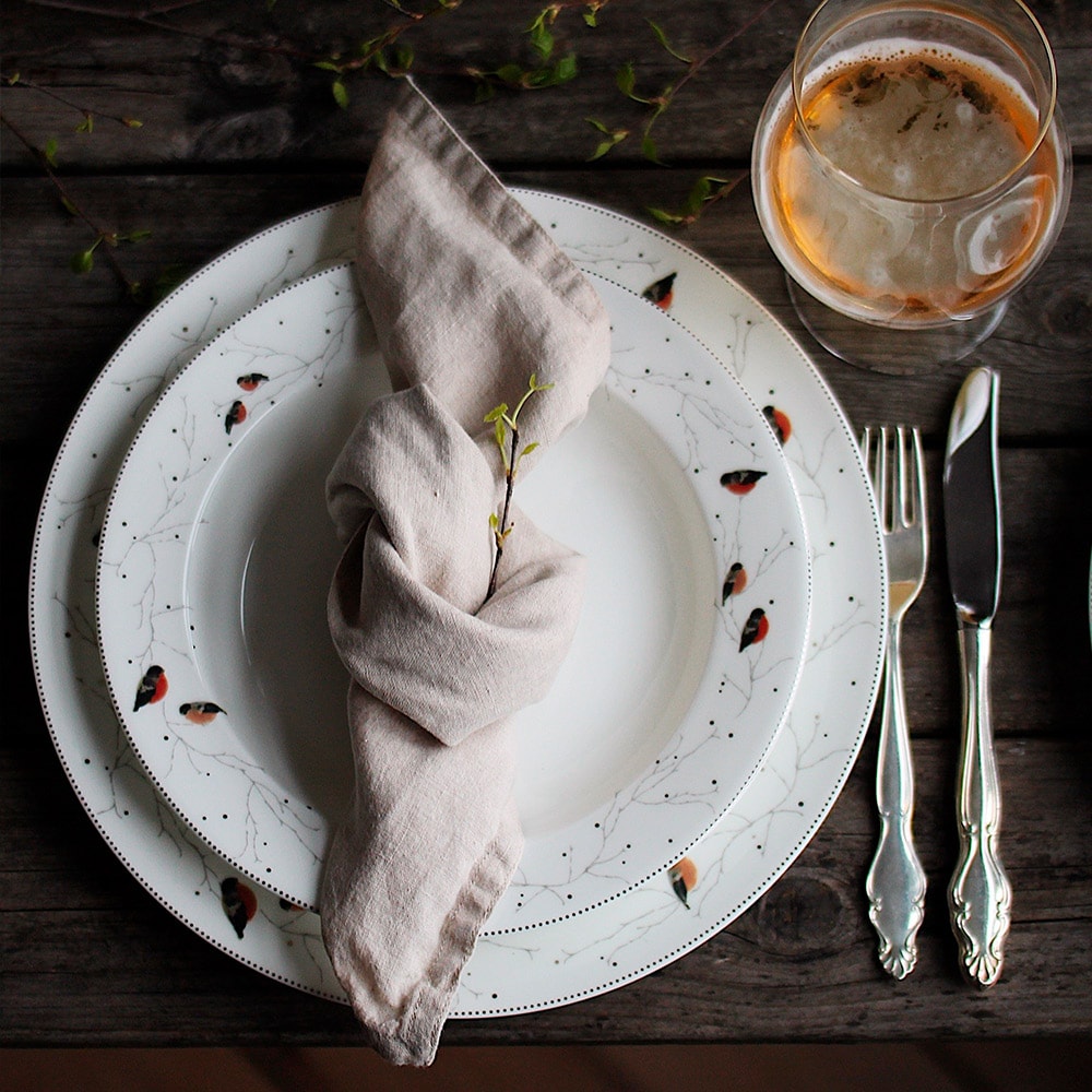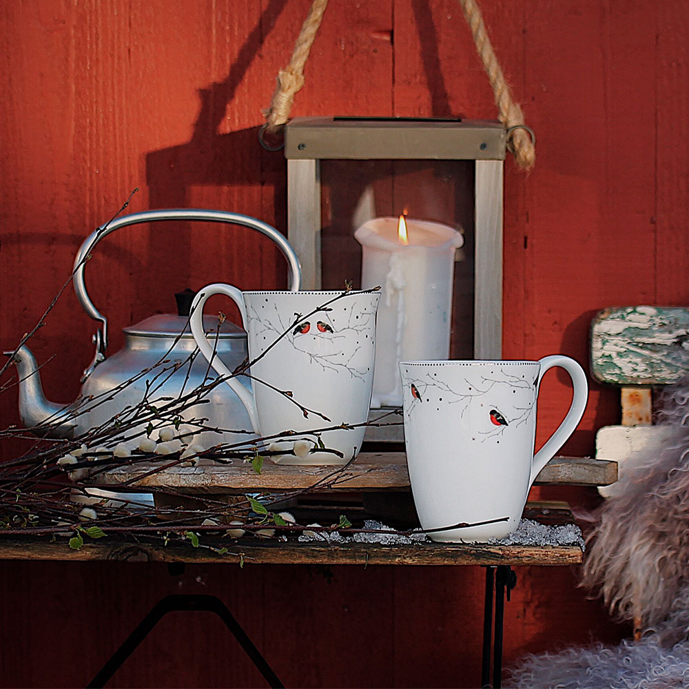 Hva er vel koseligere enn en liten, lubben, rød fugl på en rimfrostet gren? Dompap-serviset er utviklet med den norske vinteren i tankene og er det perfekte vinterservise til julehøytiden. Den fargesterke dompapen skinner på dette elegante penserviset i benporselen, satt mot et bakteppe av blekt vinterlys og nakne grener. Med små, luksuriøse detaljer i ekte platina tilfører Dompap-serviset både varme og eleganse til ethvert dekket bord. Serviset er designet av Maud Gjeruldsen Bugge og laget for å skape koselige stunder.