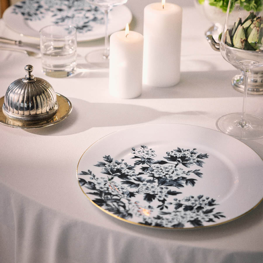 Fargen Antrasitt er en mild, sofistikert sort, oppkalt etter den reneste typen kull. Den gir et moderne og diskret uttrykk, og står i fin kontrast til de håndmalte gullkantene.
