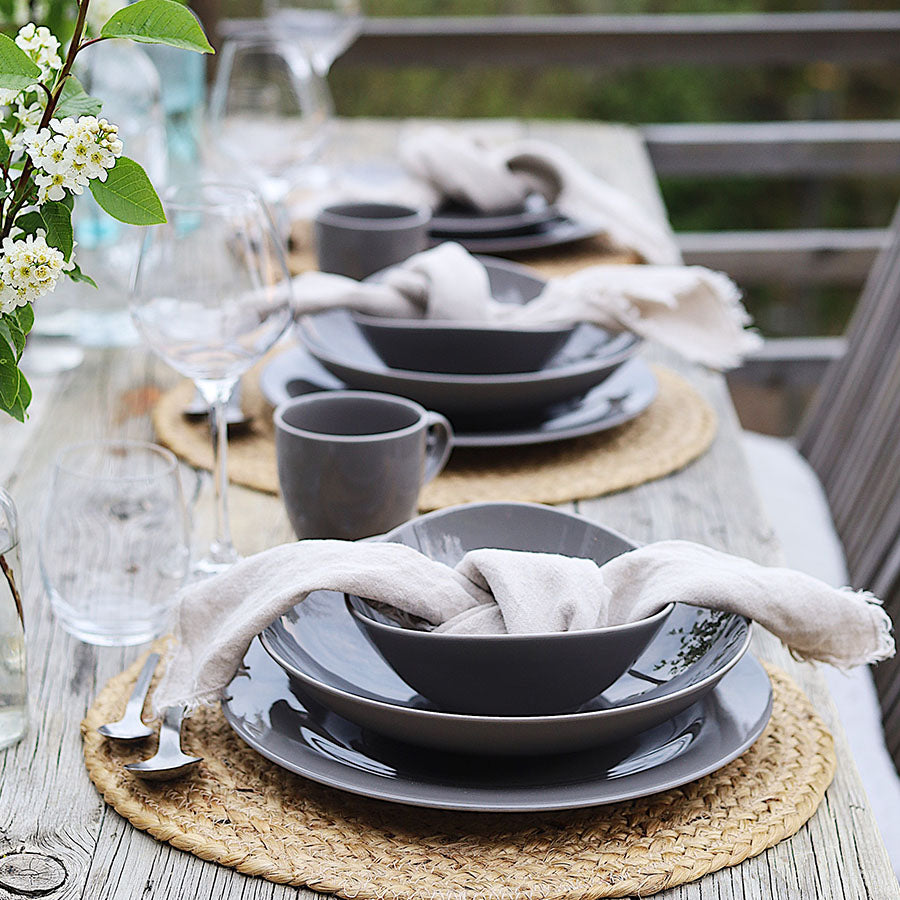 Rund tallerken med fane i en vakker gråbeige farge. Tallerkenen perfekt til å anrette lunsj eller middag på. 28 cm i diameter. Dekk bordet med servisedeler i samme farge, eller kombiner med Sense hvit eller Sense i andre farger.