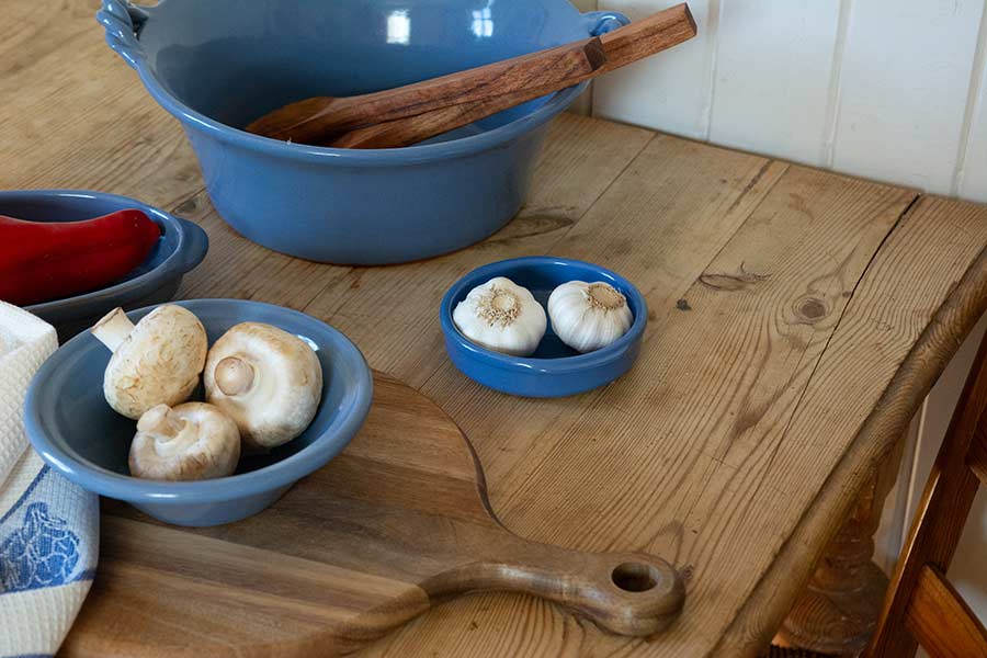 Tapasform 12 cm Azul har samme kompakte og funksjonelle design, men kommer i en dyp og rolig blåfarge. Azul er inspirert av havets rolige bevegelser og tilfører et harmonisk og elegant uttrykk til borddekkingen. Formen egner seg til varme og kalde retter, som små tapas, ovnsbakt ost eller sjokoladefondant.