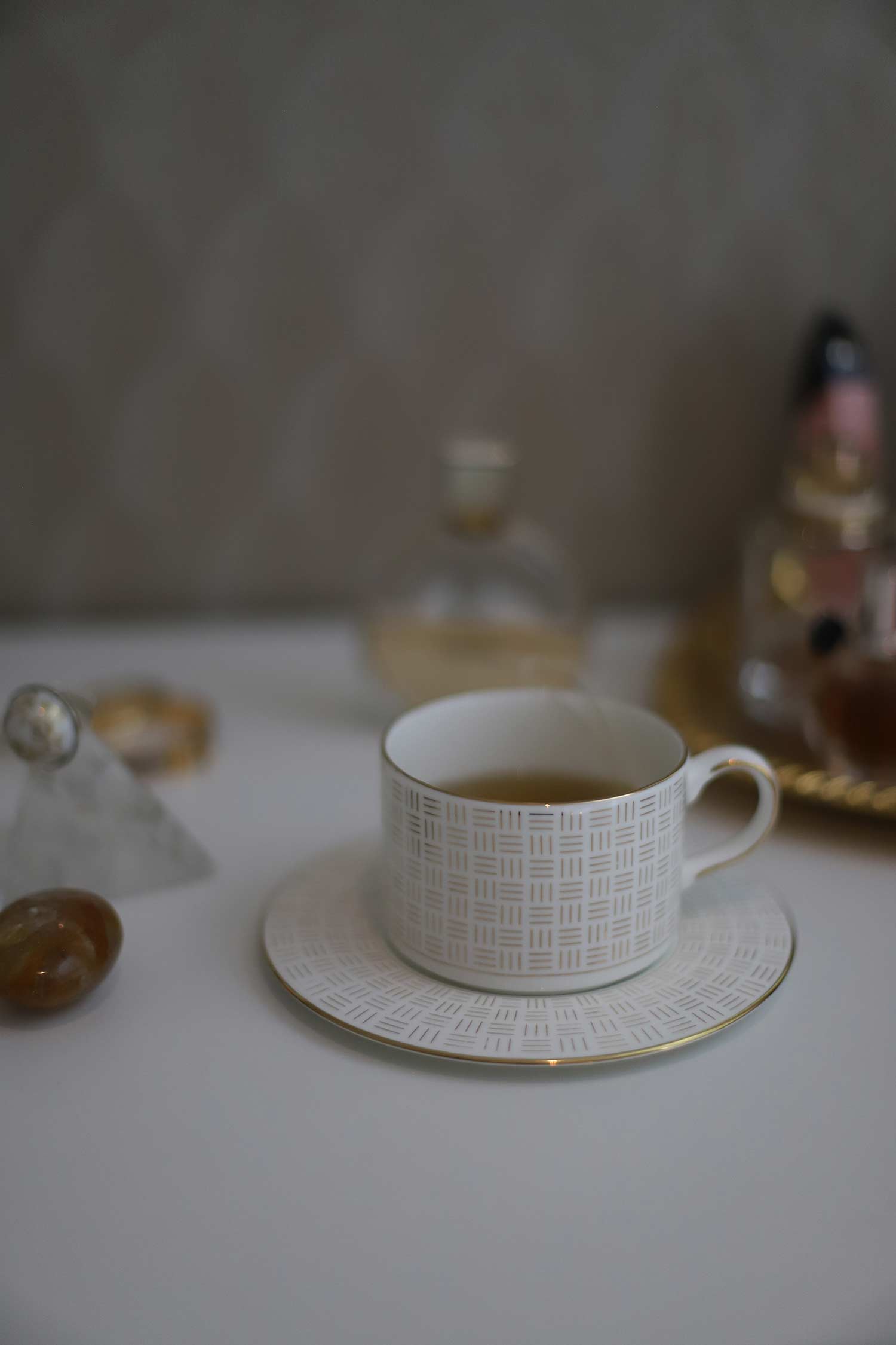 Luksus i hver slurk. Tekoppen fra Vivienne Gull er utsmykket med elegant gulldekor som gir en følelse av eksklusivitet og tidløs skjønnhet. Et vakkert valg til rolige morgener, ettermiddagste eller bryllupsbordet.