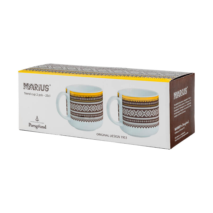 Porsgrunds Porselænsfabrik har designet moderne kopper med det tradisjonelle Mariusmønsteret. Krusene kommer i fargerike esker som 2-pk og kan også kjøpes enkeltvis, så du kan mikse og finne frem til din egen fargekombinasjon. MARIUS® mønsteret fra 1953 er vårt mest strikkede mønster og regnes som et norsk designikon. Mange nordmenn er dedikerte strikkere så hva kan vel være en bedre gave?