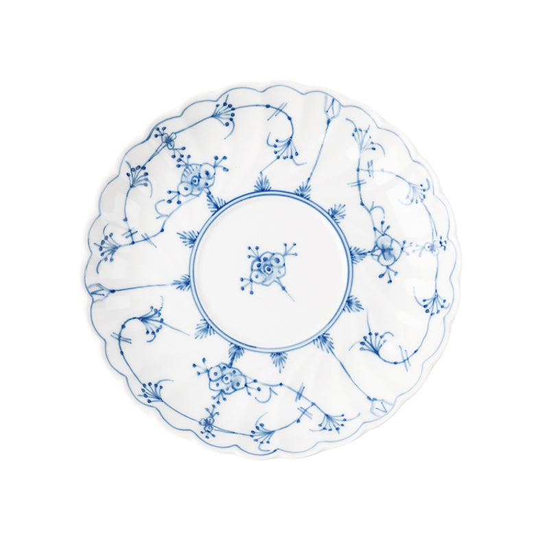 Underskålen på 15,5 cm i Bogstad Stråmønster er en vakker og funksjonell del av serien, med håndmalt blå strådekor som dekker hele overflaten. Den er designet for å passe perfekt til både kopp 22 cl og krus 35 cl, og gir en gjennomført og elegant borddekking.