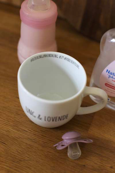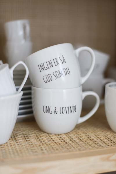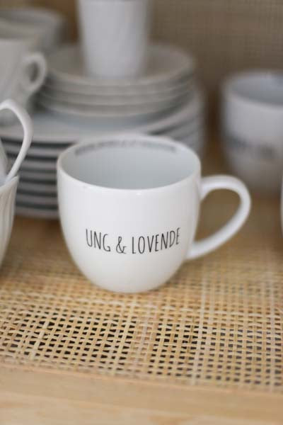Dette spreke kruset fra Hashtag-serien til Porsgrunds Porselænsfabrik har teksten «Ung og Lovende», og på innsiden finner du tre passende hashtags: #aldereringenhindring – #29 – #foreveryoung