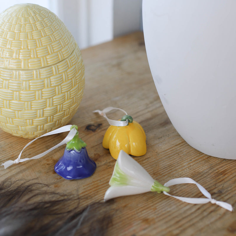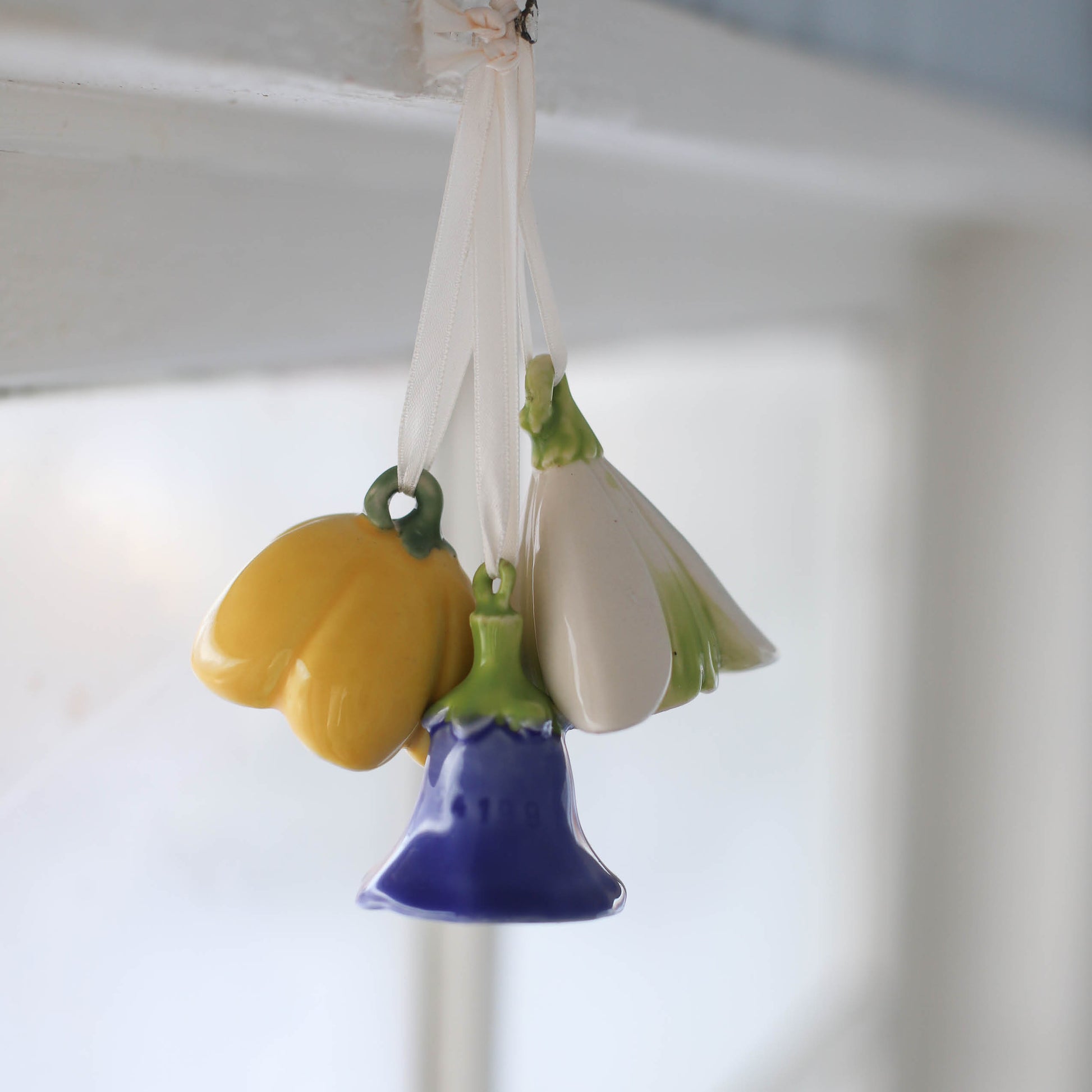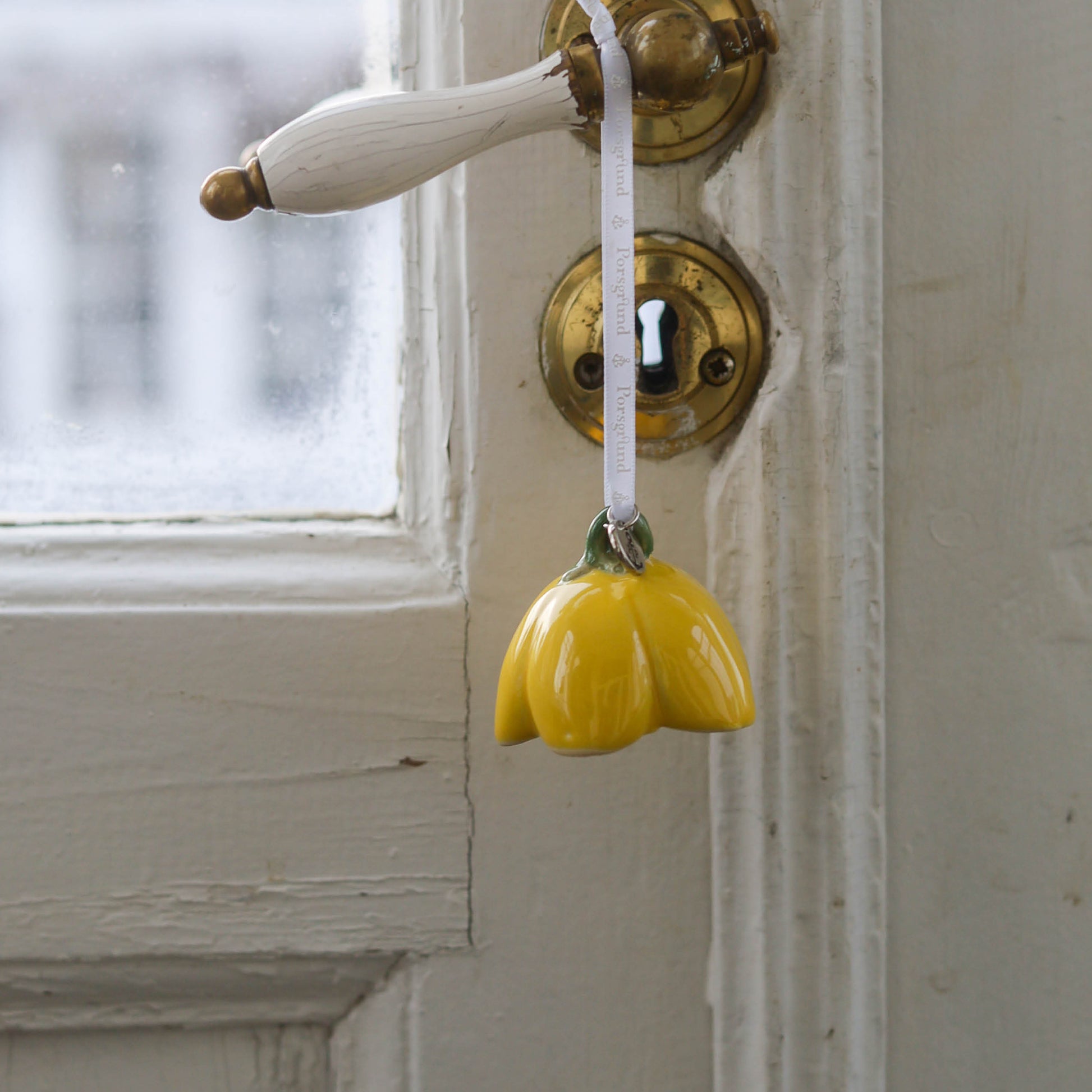 Dekorative vårblomster i porselen med silkesnor. Pakken inneholder tre vakre blomster: smørblomst, blåklokke og snøklokke. Disse delikate blomstene er perfekte for å henge på grener, kvister eller på påskebordet for å spre vårglede og liv til hjemmet.